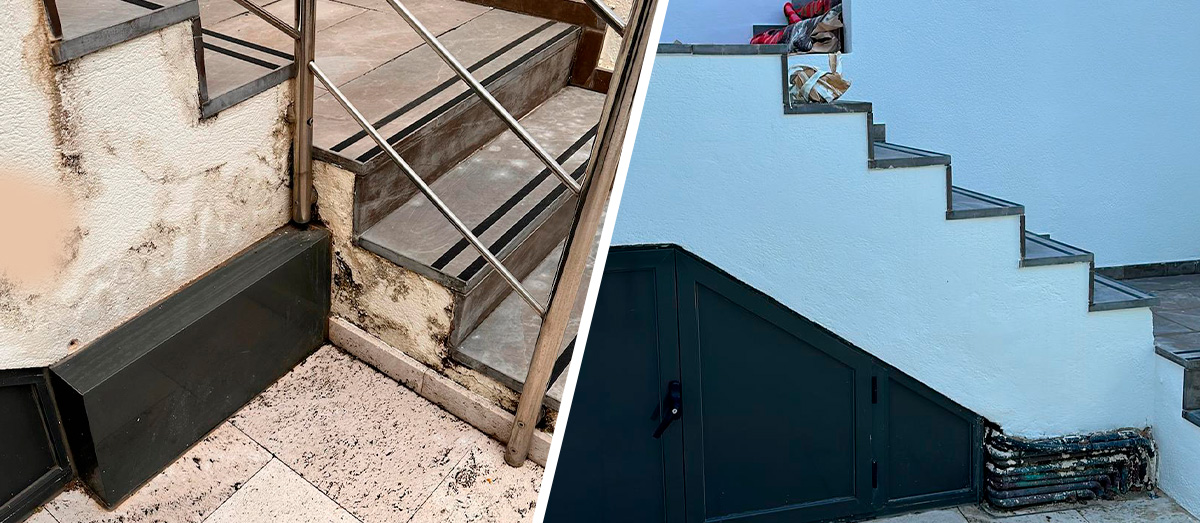 Para completar el proceso, aplicamos una pintura antimoho de la línea Revetón, asegurando una protección de larga duración frente a la aparición de hongos y bacterias.